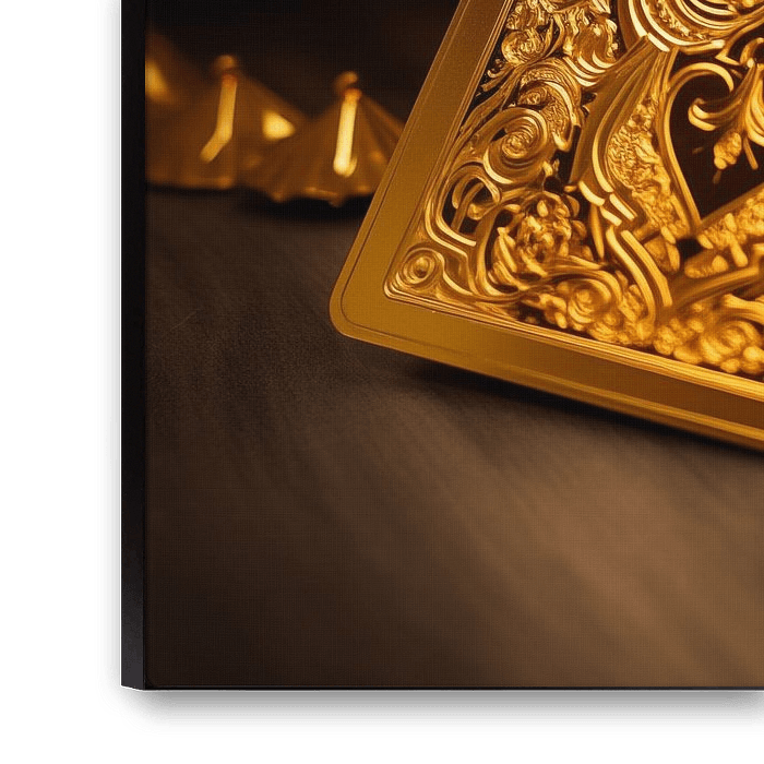 Peinture unique de cartes à jouer de l'as doré au style original. Avec de belles nuances de couleurs et un design unique, ce tableau est un tirage photo élégant qui s'intègre parfaitement dans n'importe quelle pièce.