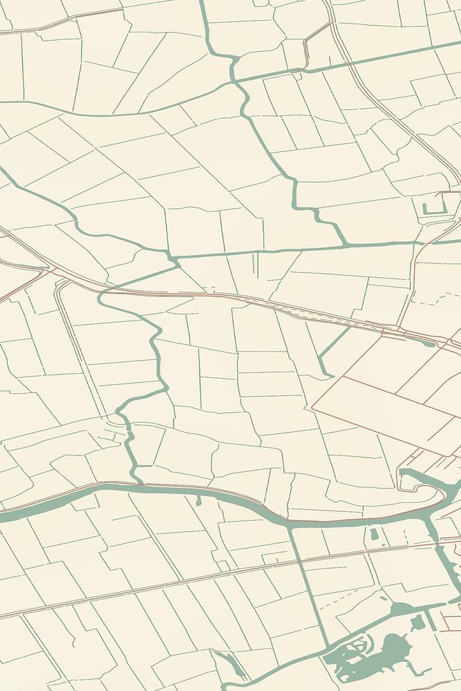 Carte rétro de Bornwird, située dans la municipalité de Noardeast-Fryslan, province de Fryslan. La carte montre les routes publiques, les cours d'eau (lacs, ruisseaux et fossés) et les forêts dans et autour de Bornwird. En outre, la carte contient les coordonnées de Bornwird.
