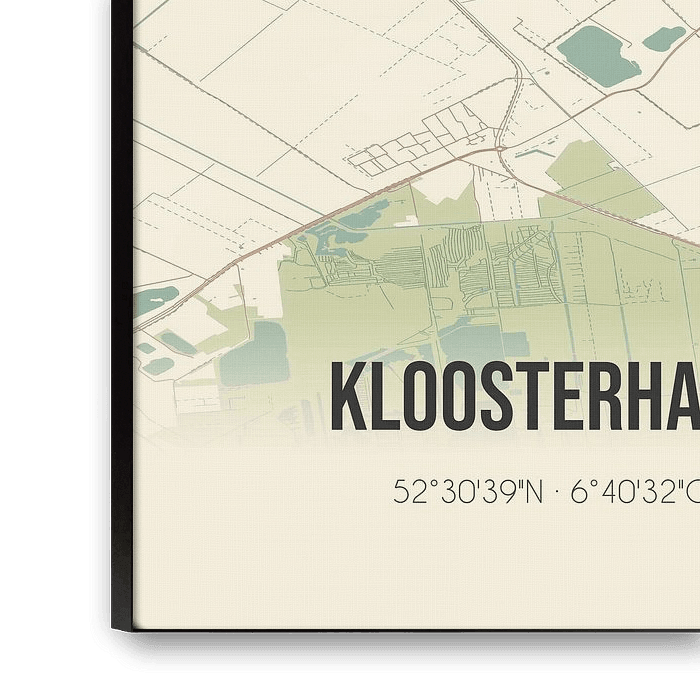 Carte rétro de Kloosterhaar, située dans la commune de Hardenberg, province d'Overijssel. La carte montre les routes publiques, les cours d'eau (lacs, ruisseaux et fossés) et les forêts dans et autour de Kloosterhaar. En outre, la carte contient les coordonnées de Kloosterhaar.
