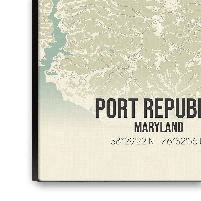 Nostalgie et aventure vont de pair avec cette carte vintage de Port Republic, Maryland. La carte vous emmène dans un voyage à travers le temps et vous fait découvrir la polyvalence de ce charmant endroit, situé aux États-Unis.