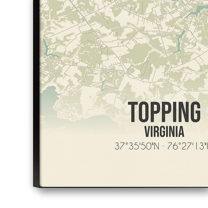 Nostalgie et aventure vont de pair avec cette carte vintage de Topping, Virginie. La carte vous emmène dans un voyage à travers le temps et vous fait découvrir la polyvalence de ce charmant endroit, situé aux États-Unis.