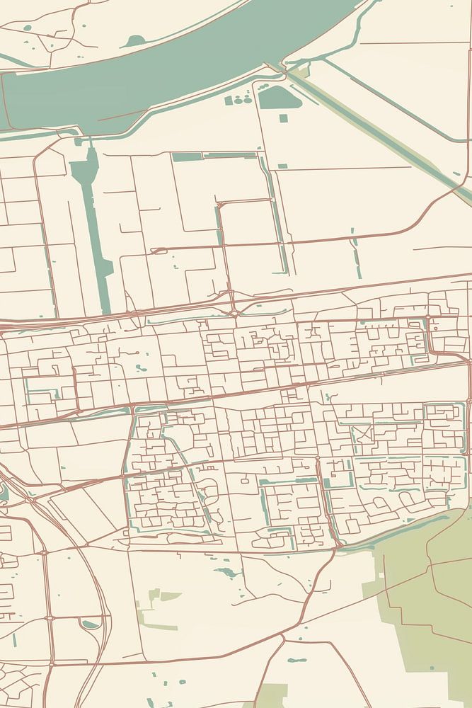 Carte rétro de Waalwijk, située dans la commune de Waalwijk, province du Brabant septentrional. La carte montre les routes publiques, les cours d'eau (lacs, ruisseaux et fossés) et les forêts dans et autour de Waalwijk. En outre, la carte contient les coordonnées de Waalwijk.