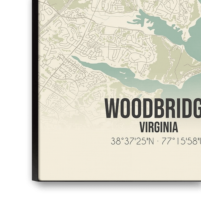 Acheter ce illustration Carte ancienne de Woodbridge (Virginie), USA. par Affiches de lieux sur toile, aluminium, ArtFrame ou photographie (encadrée), impression d'art en haute qualité et tout format.