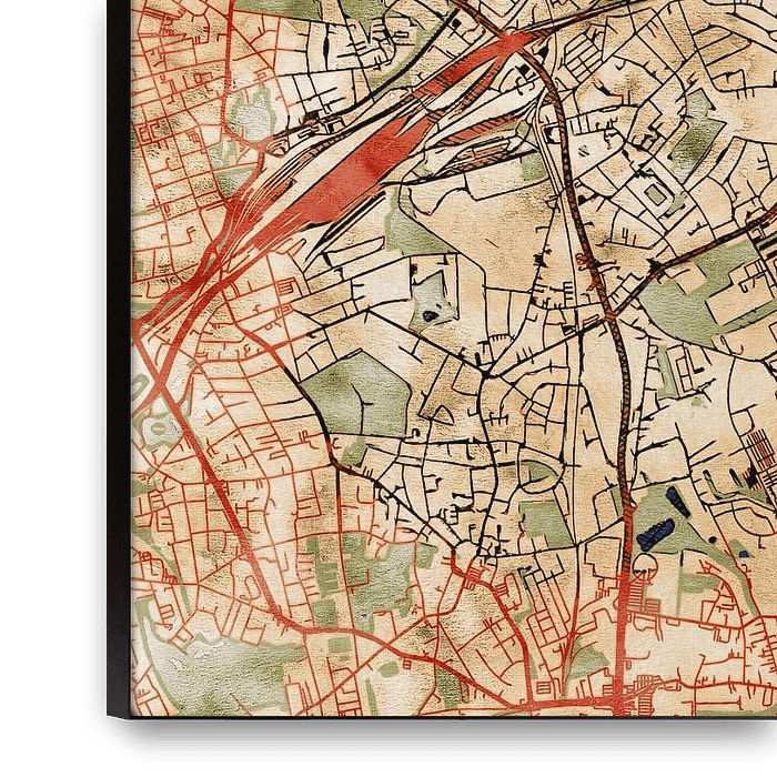 Cette carte de Herne présente notre style personnalisé "Serene Summer". Ce style se caractérise par des tons terre chauds et ensoleillés. La palette de couleurs s'inspire du style Art nouveau du début du siècle. Cette carte de Herne donne à votre intérieur un look classique et moderne.