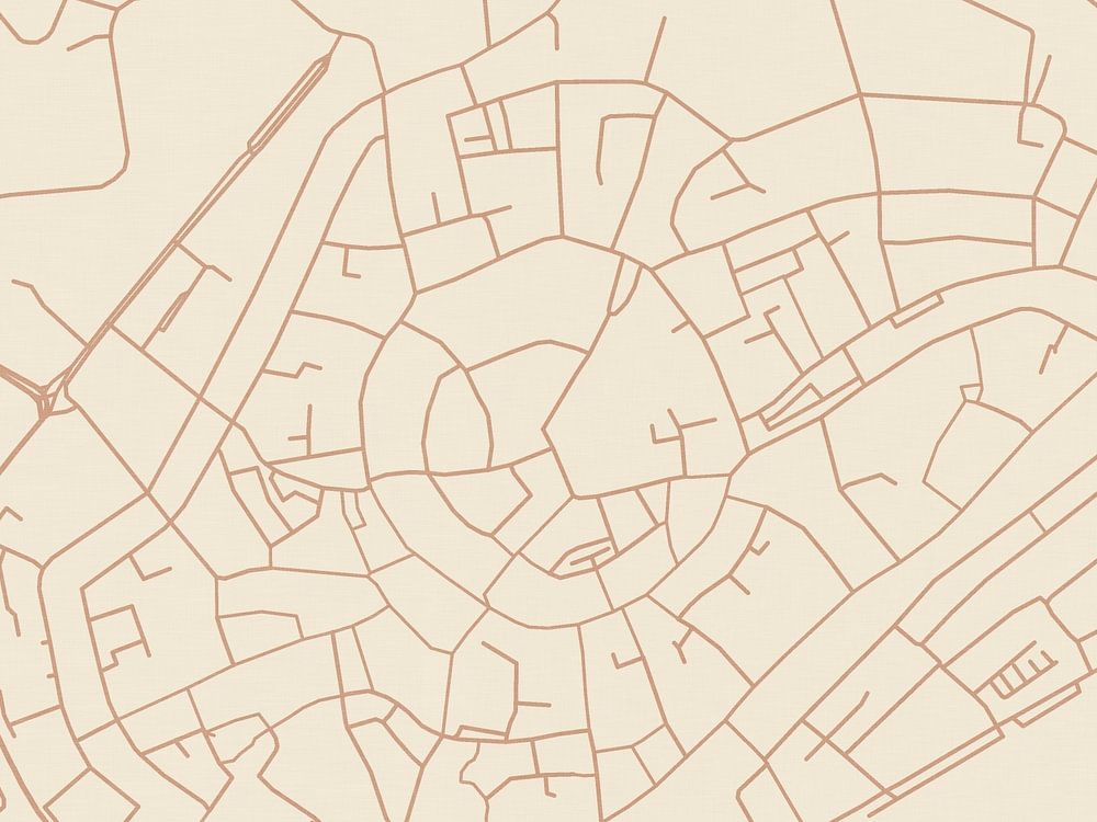 La carte de Middelburg Centrum avec cette carte au style Terracotta. Les routes sont colorées dans une nuance de corail foncé qui se situe à la frontière entre l'orange et le brun. Avec un fond de couleur beige crémeux, cette carte s'intègre parfaitement dans les intérieurs chaleureux qui utilisent largement des tons pastel et beige. Associée à une subtile texture de lin, cette carte ajoute une touche de raffinement et de tranquillité à tout espace où elle est affichée.