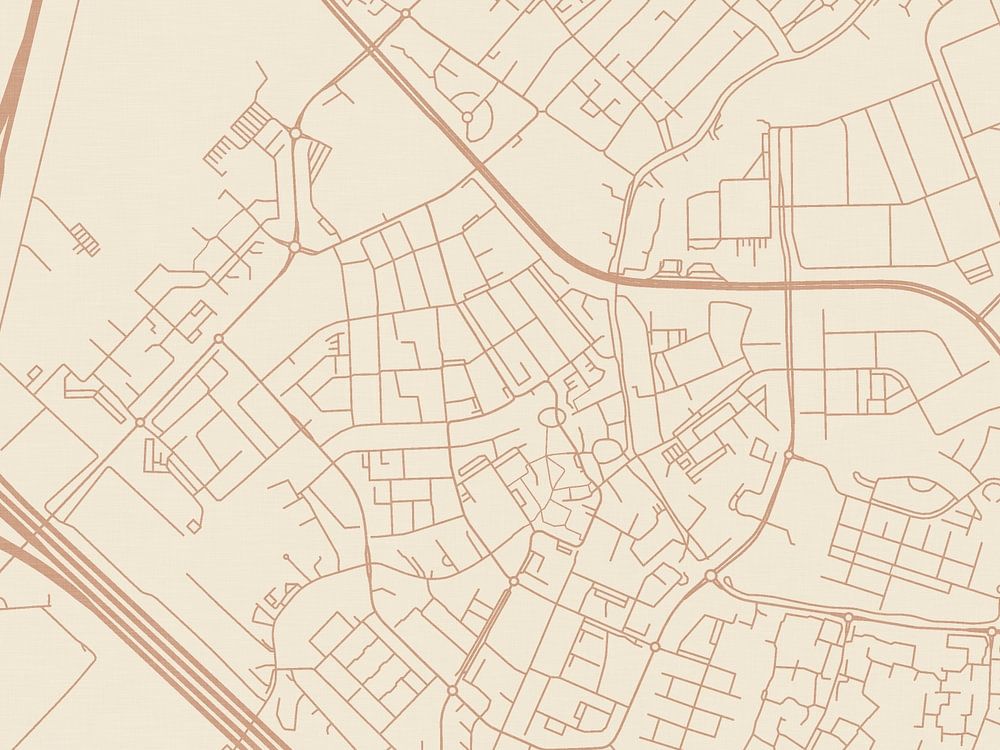 La carte de Ridderkerk avec cette carte au style Terracotta. Les routes sont colorées dans une nuance de corail foncé qui se situe à la frontière entre l'orange et le brun. Avec un fond de couleur beige crémeux, cette carte s'intègre parfaitement dans les intérieurs chaleureux qui utilisent largement des tons pastel et beige. Associée à une subtile texture de lin, cette carte ajoute une touche de raffinement et de tranquillité à tout espace où elle est affichée.