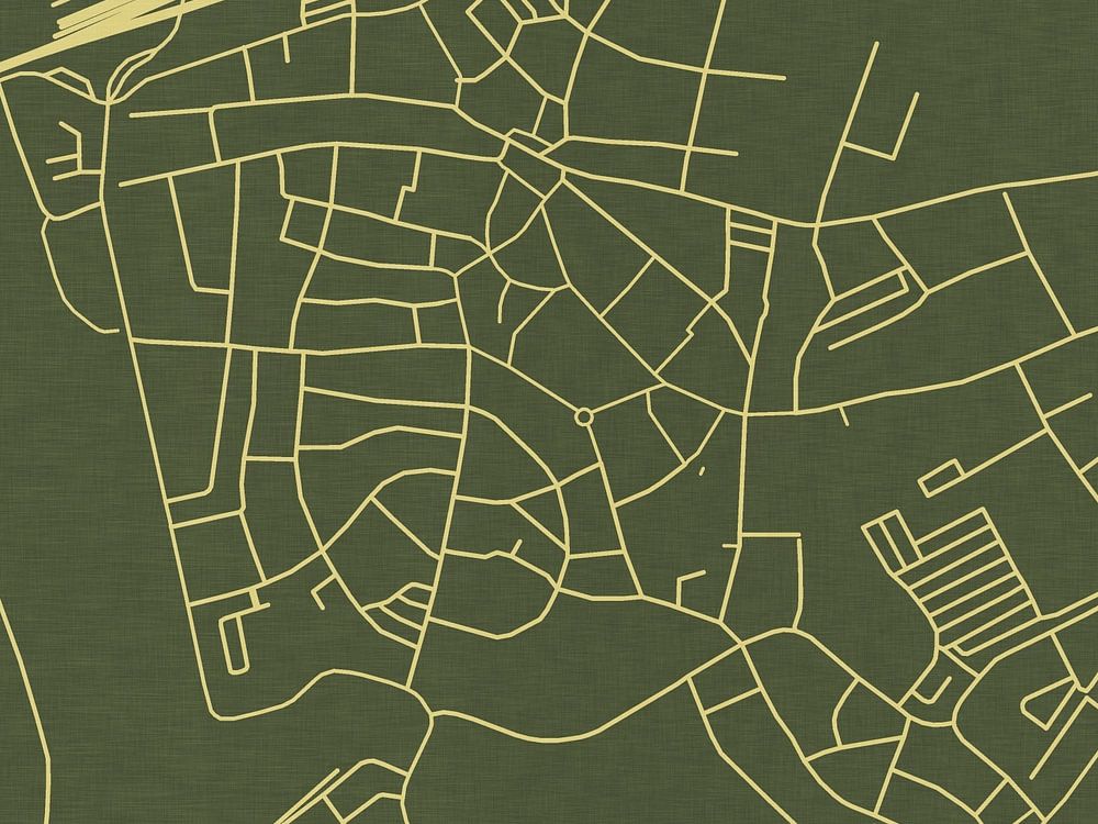 La carte de Zutphen Centrum avec cette carte dans le style Vert Doré. Les routes d'un jaune doré contrastent avec un fond vert. Associée à une subtile texture en lin, cette carte ajoute une touche de raffinement et de tranquillité à tout espace où elle est exposée.