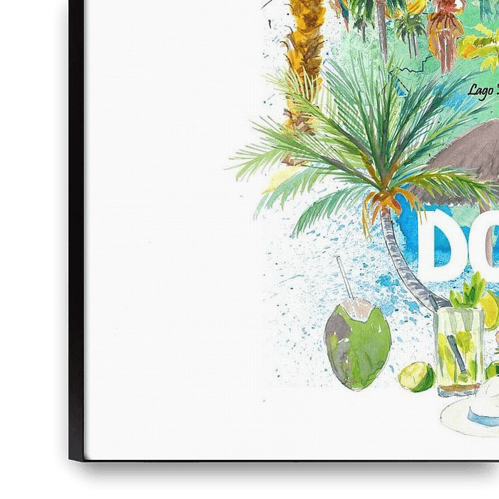 Acheter ce tableau Carte de voyage illustrée de la République dominicaine avec les routes et les points saillants par Markus Bleichner sur toile, aluminium, ArtFrame ou photographie (encadrée), impression d'art en haute qualité et tout format.