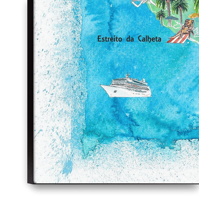 Acheter ce tableau Carte illustrée de l'île de Madère Portugal avec les points de repère et les points forts par Markus Bleichner sur toile, aluminium, ArtFrame ou photographie (encadrée), impression d'art en haute qualité et tout format.