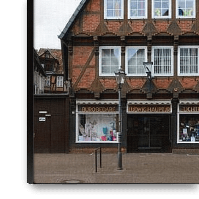 Achetez cette photo Celle, rue à colombages Zöllnerstraße par Panorama Streetline sur toile, aluminium, ArtFrame ou photographie (encadrée), impression d'art en haute qualité et tout format.