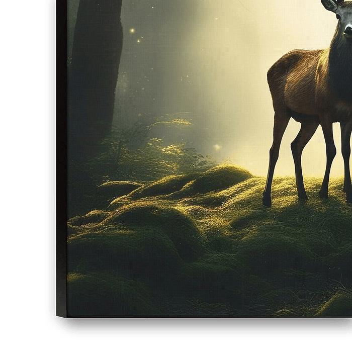 Acheter ce art numérique Cerf majestueux dans une forêt mystique avec une lumière magique par DesignByDessie sur toile, aluminium, ArtFrame ou photographie (encadrée), impression d'art en haute définition et tout type de format.