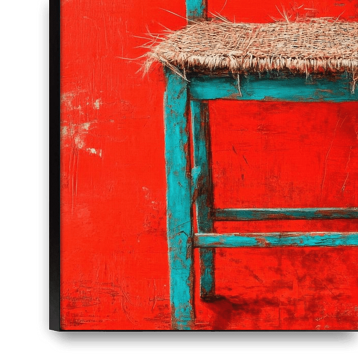 Au milieu d'un mur rouge vibrant trône une charmante création de chaise bleue usée, dont le charme rustique ne laisse pas indifférent. Deux oiseaux au plumage noir semblent y être assis avec vivacité, comme s'ils étaient les gardiens de ce décor coloré, prêts à raconter des histoires et à remplir le silence de leurs gazouillis. Un…