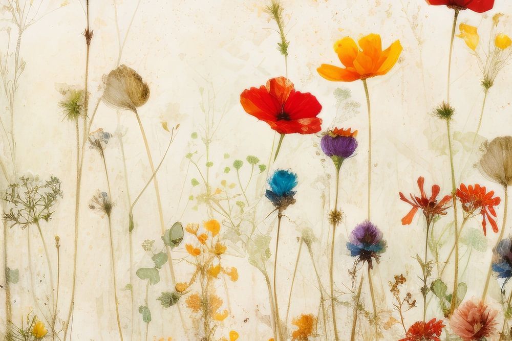 Achetez cette œuvre d'art florale Champ avec des fleurs sauvages et un papillon par Studio Allee sur toile, aluminium, ArtFrame ou photographie (encadrée), impression d'art en haute qualité et tout format.