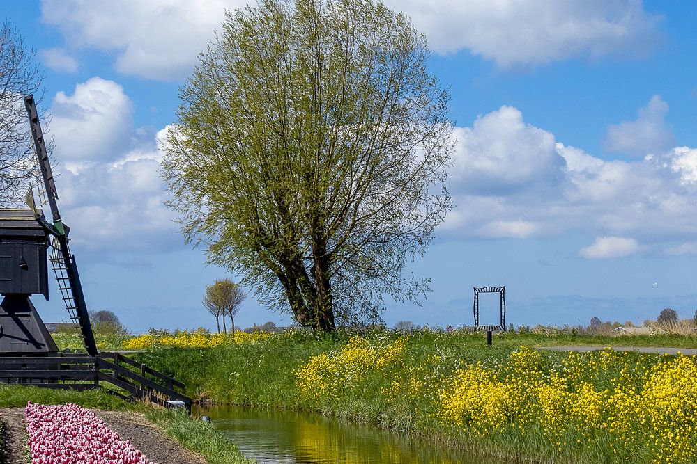 Le moulin KLIKJESPOLDER de 1920 à Oostwoud est un moulin à eau. Celui-ci se dresse au milieu des champs de tulipes en fleurs. Un paysage hollandais vraiment magnifique où le temps semble s'être arrêté. couleurs : bleu / blanc / jaune / noir / rose / vert sujet : champ de tulipes / tulipes / fleurs / champ de bulbes / champs de tulipes / paysage / printemps / pays-bas / hollande / nord-hollande / ouest-friesland convient pour le salon / espace de travail / salle de réunion / bureau / salle à manger / cuisine / bureau / salle d'attente / couloir / chambre à coucher / bureau / fond d'écran
