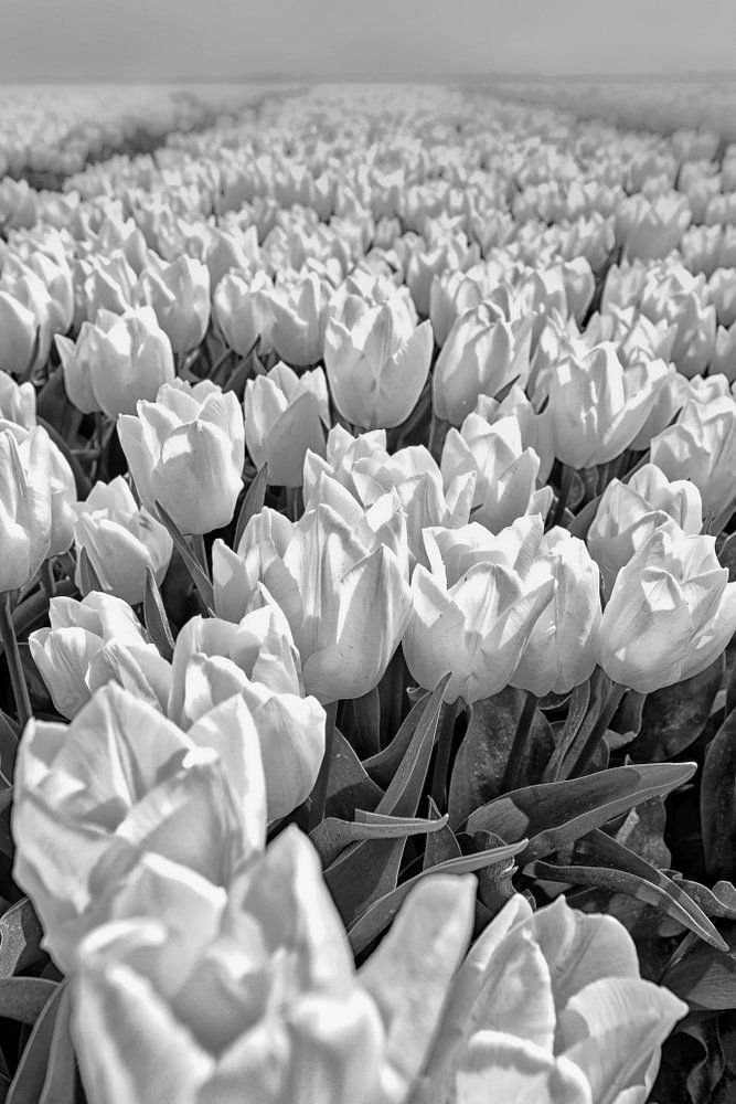 Sur le Goeree-Overflakkee, environ 450 hectares de terres arables sont utilisés pour la culture des bulbes. La culture a autrefois commencé à petite échelle à Ouddorp et dans ses environs. Dans les années 1950, la culture des glaïeuls a fait son apparition sur l'île. A partir des années 1960, la culture des bulbes de tulipes a progressivement pris la place de la culture des glaïeuls. Le résultat brillant colore maintenant le paysage chaque année. Celui-ci en noir et blanc.