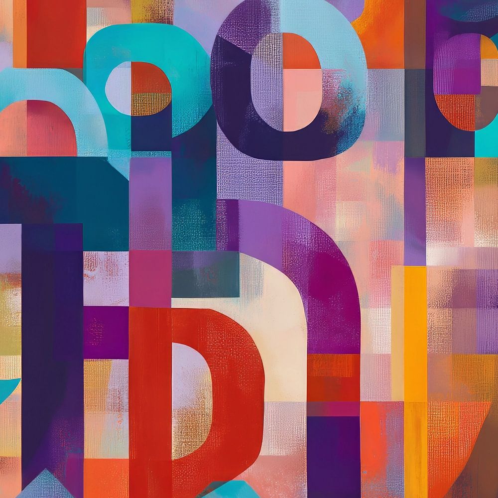 Chaos of Colors" ; apporte une explosion visuelle de formes et de couleurs typographiques, réunissant différentes polices de caractères dans une composition abstraite. Les grandes lettres audacieuses sont placées de manière énergique sous différents angles et se fondent dans les tons sourds de l'arrière-plan. Les couleurs vont du violet et de l'orange profonds au turquoise rafraîchissant, créant un contraste dynamique. L'utilisation de blocs et de formes de lettres qui se chevauchent crée un sentiment d'agitation et de mouvement, comme si la typographie elle-même prenait vie. Située à l'intersection de l'art graphique et de l'abstraction, cette œuvre est produite numériquement, avec une subtile texture de toile qui rehausse l'aspect réel de la peinture. L'œuvre semble explorer le langage visuel des lettres, chaque élément de son chaos ayant sa propre signification et sa propre beauté.