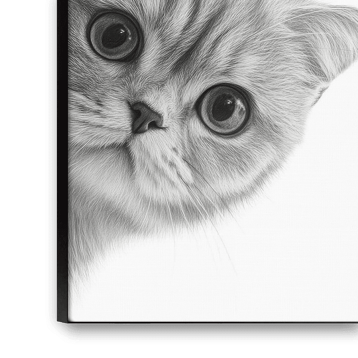 Ici, c'est la curiosité pure qui sort de l'image ! Avec son design épuré et son slogan amusant, il attire parfaitement l'attention de tous ceux qui aiment le caractère et le charme. Moderne, minimaliste et avec un clin d'œil, c'est un must-have pour les amis des chats comme pour les amateurs de design.