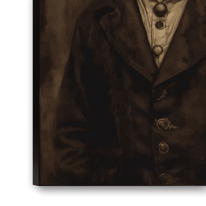 Cet extraordinaire portrait félin nous transporte au cœur de la révolution industrielle, où les cieux enfumés, les machines qui s'entrechoquent et les inventions ambitieuses définissent l'époque. Le chat se dresse fièrement comme une figure distinguée du progrès, incarnant un mélange de dignité raffinée et d'élan agité d'un monde évoluant à une vitesse sans précédent. La toile de fond est animée par d'imposantes usines sidérurgiques, des voies ferrées coupant l'horizon et des fours projetant des lueurs vives dans un crépuscule brumeux. La vapeur s'élève en rubans fantomatiques, symbolisant la transformation et le pouvoir de l'industrie. Les coups de pinceau de l'artiste créent une richesse tactile, mettant en relief la fourrure du chat tout en se fondant doucement dans l'environnement métallique hostile. Ses yeux brillent d'une intelligence tranquille et d'une prévoyance stratégique - un observateur qui semble pleinement conscient du changement monumental qui s'opère autour de lui. La posture calme et digne du chat offre un contraste saisissant avec le chaos de l'invention et du travail, et sert de métaphore de la stabilité au sein du progrès. Les lumières douces et les ombres marquées évoquent une atmosphère classique digne d'un musée, tandis que de subtiles touches de texture confèrent à la composition une authenticité historique. Cette œuvre d'art s'adresse aux collectionneurs qui aiment les animaux dotés d'une profonde personnalité, capturant non seulement un beau sujet mais aussi l'âme d'une époque définie par l'innovation et la résilience. Un hommage raffiné à la grâce féline et à l'esprit audacieux du progrès humain - intemporel, captivant et riche en potentiel de narration.