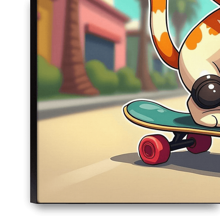 Acheter ce illustration Chat mignon sur un skateboard par Laly Laura sur toile, aluminium, ArtFrame ou photographie (encadrée), impression d'art en haute qualité et tout format.