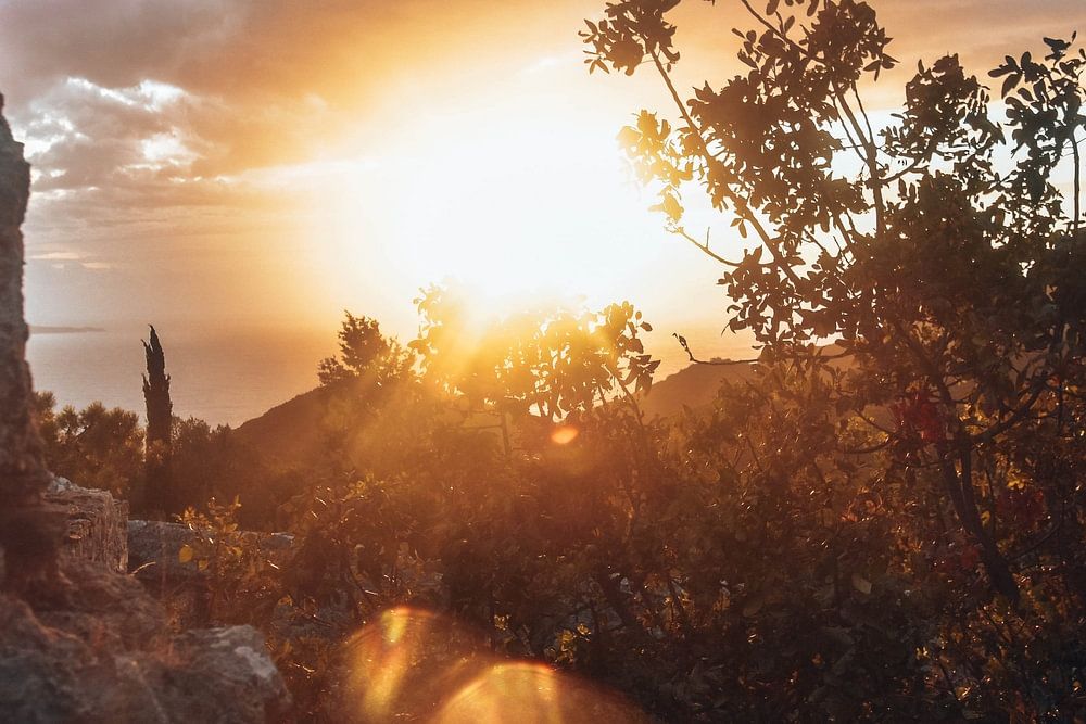 Coucher de soleil sur un beau château à Parga, en Grèce. Lors d'un voyage en voiture dans la région, nous sommes passés par cet endroit magnifique.