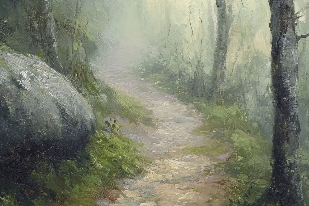 Évadez-vous dans un monde serein avec cette peinture d'un sentier forestier brumeux, qui vous invite à vous perdre dans vos pensées. L'atmosphère pittoresque capture le sentiment d'une promenade matinale dans une forêt humide et mystérieuse. Les couleurs douces et les jeux d'ombre et de lumière dégagent une sérénité calme, parfaite pour tout espace qui appelle une touche de nature et de tranquillité. Cette œuvre d'art peut transformer une chambre ou un couloir en un lieu de détente et de réflexion, où vous pouvez tout laisser derrière vous pour un moment et rêver dans la beauté enchanteresse de la nature.