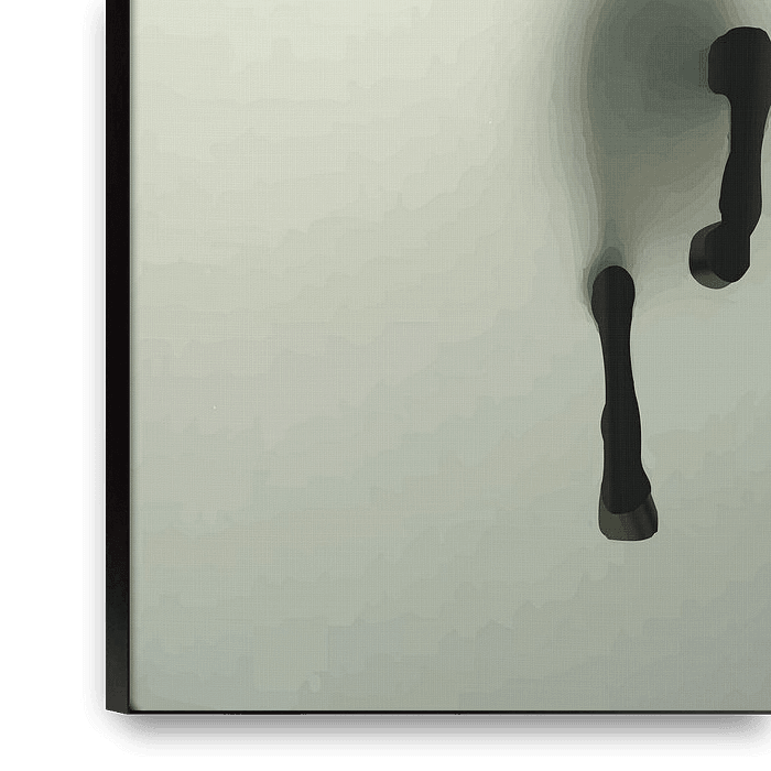 Cette œuvre d'art capture l'image surréaliste d'un cheval semblant percer un brouillard dense et éthéré. Avec une approche minimaliste et abstraite, l'œuvre évoque un sentiment de mystère et d'intrigue, soulignant l'élégance et la puissance d'un cheval dans un style unique et moderne. La silhouette du cheval est à peine visible, adoucie…