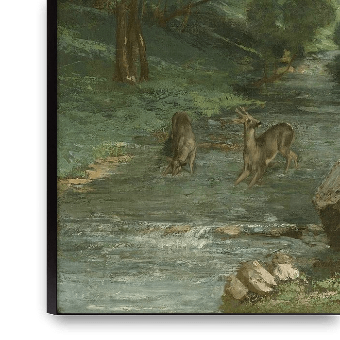 Chevreuil au bord d'un ruisseau, Gustave Courbet (1868) Courbet était un chasseur passionné et a peint des œuvres telles que Chevreuil au bord d'un ruisseau - dans lesquelles il semble s'approcher du chevreuil, sa proie sans être observé - pour attirer les clients qui partageaient ses intérêts sportifs. En représentant des créatures aussi rapides et craintives, il a également démontré sa capacité à faire des observations et des rendus rapides comme l'éclair.