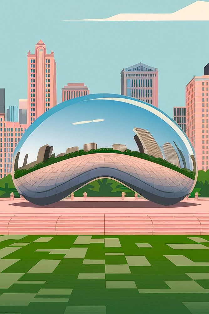 Une silhouette urbaine stylisée qui ravit avec l'impressionnante ligne d'horizon de Chicago, tandis que l'emblématique "Bean" brille au premier plan. La palette de couleurs harmonieuse et le design épuré confèrent à la pièce une touche de modernité. Parfait pour le salon, il inspire les conversations sur les voyages et l'architecture et crée une atmosphère accueillante.