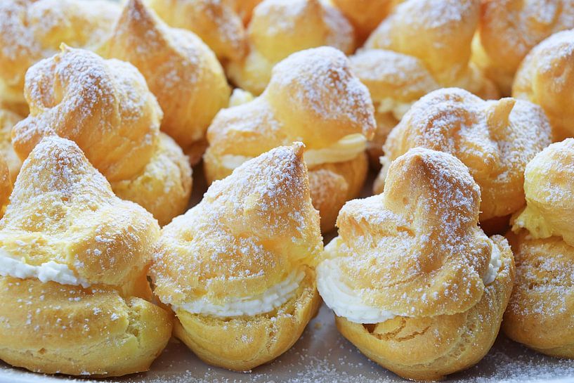 Gros plan sur un savoureux dessert sucré fait maison avec des choux à la crème sur une assiette.