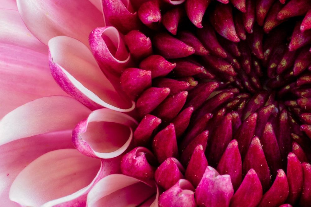 Gros plan d'un chrysanthème rose sur fond noir.