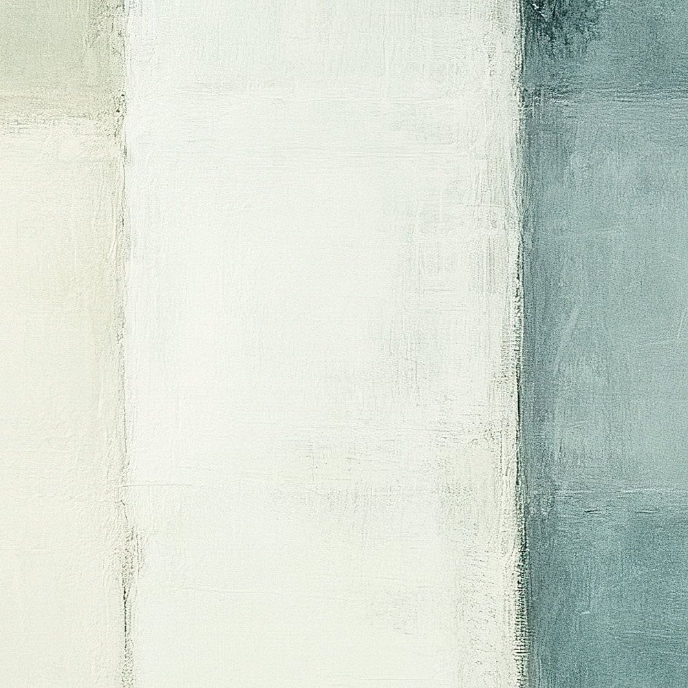 Calm Blue Whisper - Cette peinture abstraite présente des blocs géométriques simples dans de douces nuances de bleu et de blanc, dégageant un sentiment de calme et d'espace.