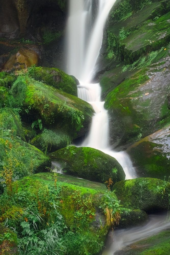 Les chutes d'eau de Triberg sont certainement les perles de la Forêt Noire en Allemagne. Lors de mon voyage en Suisse, je suis passé devant cet endroit et je me devais de photographier ce lieu magnifique. Il pleuvait des cordes et il faisait nuit noire, des conditions parfaites pour photographier avec des vitesses d'obturation longues. Cela signifie que l'image n'est pas figée mais qu'elle montre volontairement du mouvement, comme ici dans l'eau de la cascade qui a maintenant un effet laiteux.