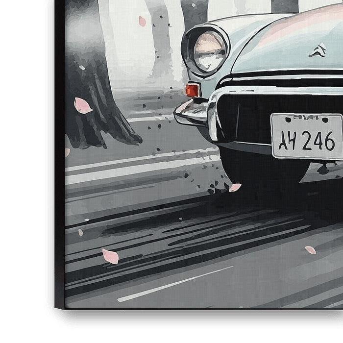 Dans ce chef-d'œuvre de sumi-e, la Citroën DS apparaît comme une vision de grâce et de mouvement - sa silhouette fluide est peinte avec des traits d'encre audacieux et sauvages qui glissent comme le vent sur l'eau. L'artiste n'a pas saisi la précision mécanique, mais l'émotion - l'âme de la voiture, où la beauté et l'innovation s'entremêlent. Chaque ligne semble vivante, respirant avec rythme et contrôle, tout en faisant écho à la spontanéité et à la liberté. Les lavis d'encre noire s'estompent en dégradés brumeux, évoquant le calme fugace d'un brouillard matinal. La voiture semble dériver entre rêve et réalité, intemporelle et éphémère, à l'image de l'art du sumi-e lui-même.