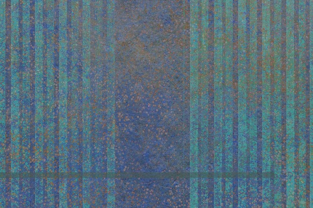 Multiples textures métalliques construites en différentes couches. Cela crée une tessellation colorée. Une œuvre abstraite et moderne aux couleurs froides et aux textures métalliques, un contraste fascinant.