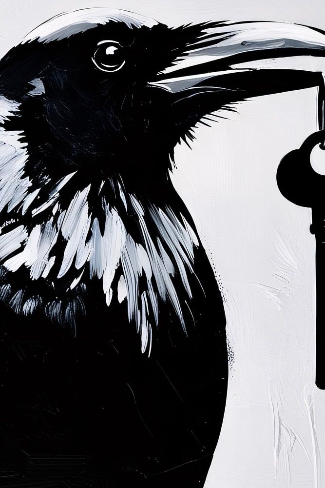 Cette œuvre d'art élégante et minimaliste représente un corbeau tenant une clé. Les couleurs noir et blanc donnent une impression de propreté et de contemporanéité, parfaite pour les intérieurs modernes. Le dessin allie simplicité et mystère, ce qui en fait à la fois une attraction et un ajout subtil à l'espace. Particulièrement adapté aux amoureux des animaux et du symbolisme, cet imprimé donne du caractère au salon ou au bureau, par exemple. Le symbolisme du corbeau et de la clé peut évoquer différentes significations, de la liberté au mysticisme, et laisse place à l'interprétation personnelle.