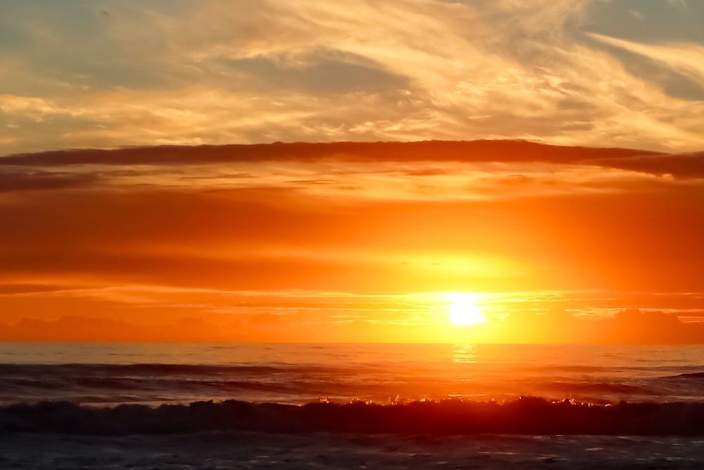 Magnifique coucher de soleil à Greymouth sur la côte ouest de la Nouvelle-Zélande. Un beau moment où nous avons regardé le soleil s'enfoncer dans la mer.