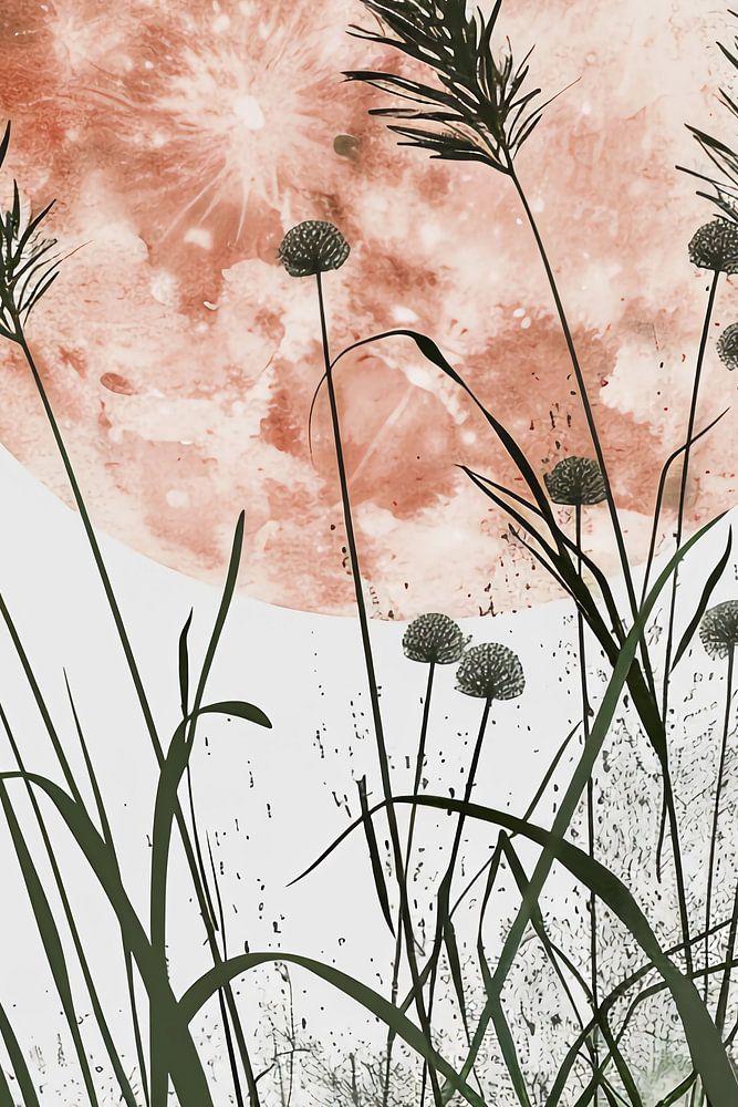 Coucher de soleil et herbe de la pampa œuvre d'art minimale moderne