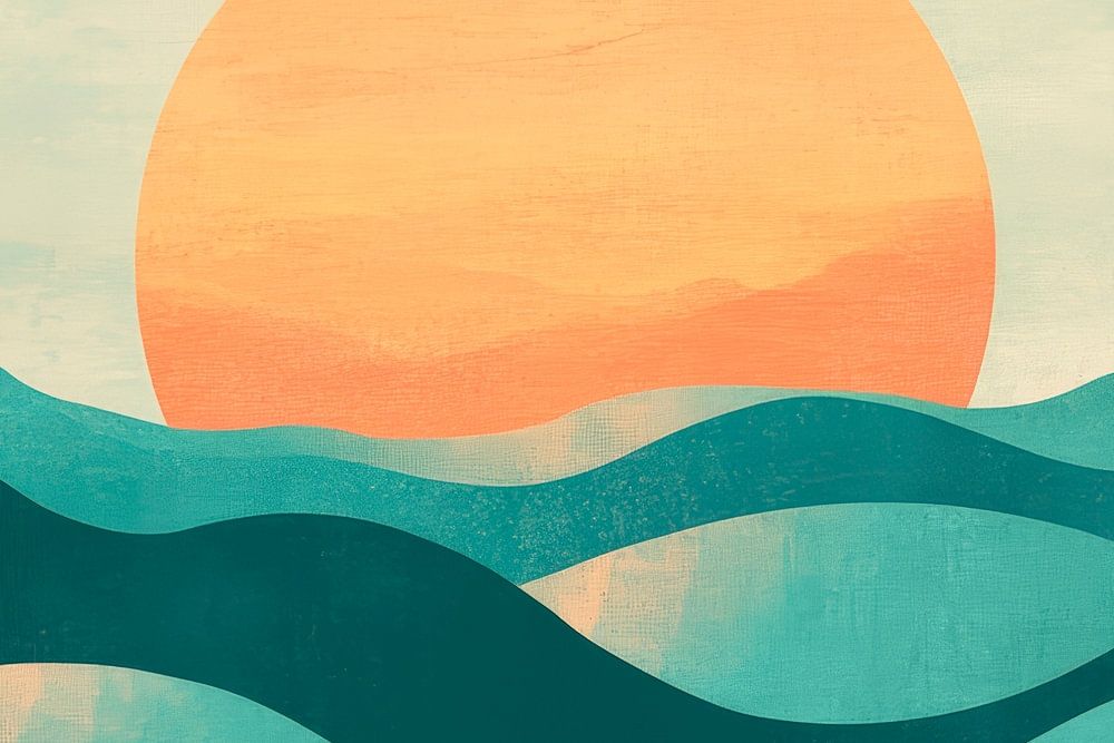 De douces vagues dansent dans des tons verts harmonieux, tandis qu'un grand soleil chaud se lève dans de douces nuances d'orange et de jaune. Ce décor apaisant respire la paix et la sérénité et convient parfaitement à une chambre à coucher ou à un salon confortable pour remplir la pièce d'une atmosphère relaxante.