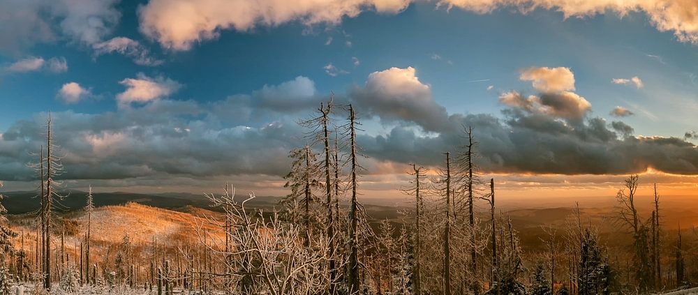 Un incroyable coucher de soleil hivernal sur la Lusen en forêt bavaroise