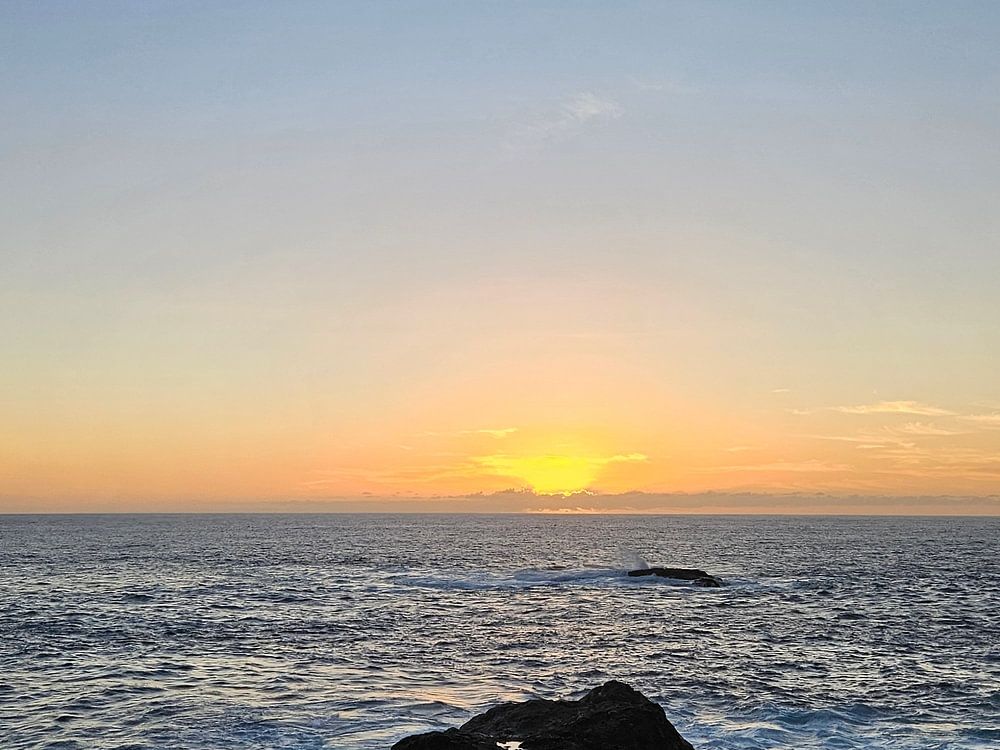 Imagine que tu contemples une image à couper le souffle qui réunit la beauté majestueuse du ciel et de la mer. Cette scène est une interaction parfaite entre les jeux de couleurs puissants du ciel et la douce étendue de l'océan, qui fascine le spectateur.