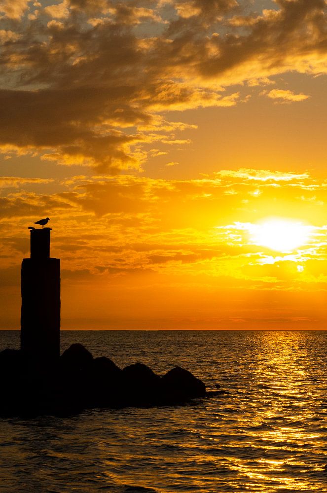 Coucher de soleil sur le Brouwersdam du côté de la mer du Nord, près de la jetée.
