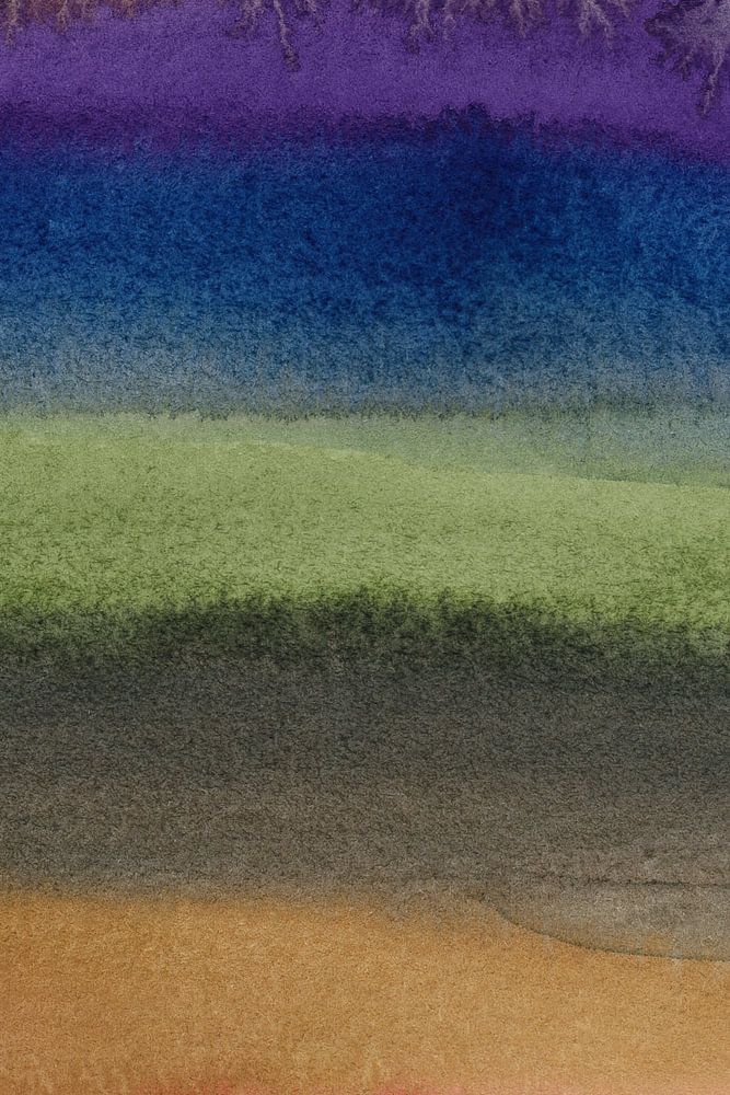 Coups de pinceau aquarellés en violet, rose, ocre, vert, bleu, violet et taupe.