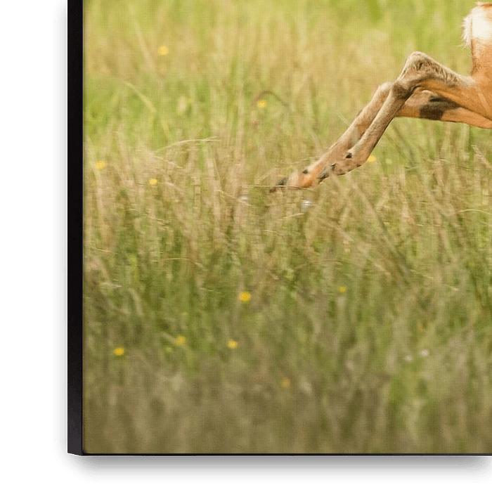 Un chevreuil court à toute vitesse à travers les champs de Drenthe pour se mettre en sécurité.