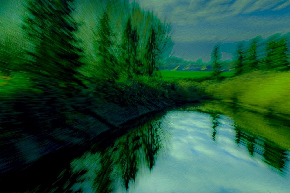 Cette photo a un fort caractère onirique et impressionniste. Le flou de bougé délibéré confère à l'image beaucoup de dynamisme et d'émotion. On a l'impression de ne pas voir mais de vivre le paysage.