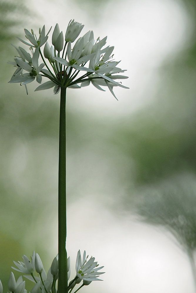 De bloemen hebben zes witte bloemdekbladen en zijn in losse bolvormige schermen gegroepeerd. De plant bloeit van april tot juni, soms tot juli. Na juli verdwijnt het bovengrondse deel van de plant volledig en blijft enkel de ondergrondse bloembol over. De plant wordt 30-40 cm hoog. De plant groeit vaak in groepen. De bloem bevat zes meeldraden en een driedelige stamper. Deze zijn omgeven door zes breed ovale bloemdekbladen. De zaden zijn zwartbruin.