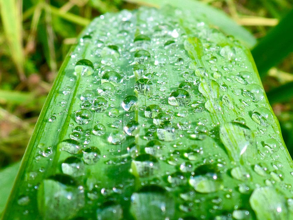 Zomaar een blad langs de kant van een pad waar je op loopt. Niemand heeft er aandacht voor en iedereen loopt er langs. Eenmaal van dichtbij kijkend zie je de natuur in volle glorie. Het spel van water op groene bladeren, puur natuur. Een macro opnamen die het goed doet aan de muur.