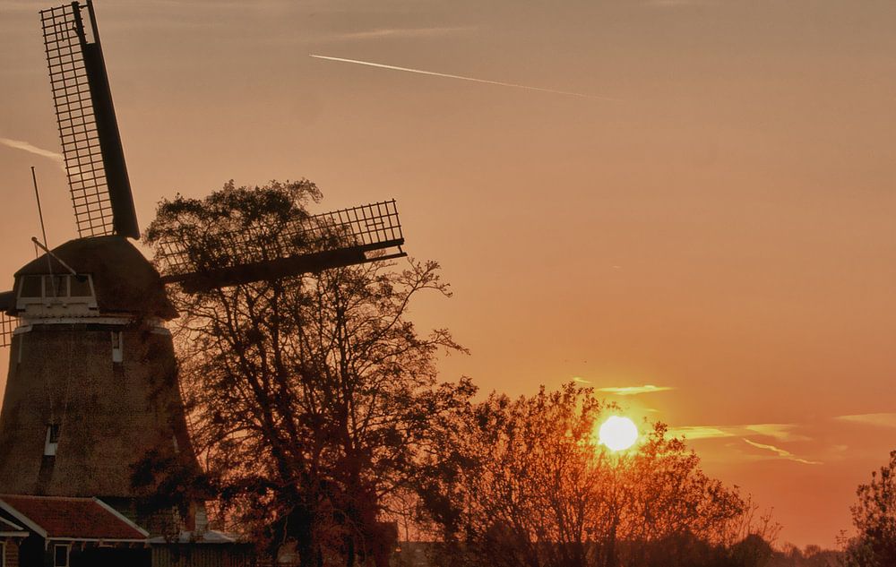 Foto van de Kathammer-molen bij Katwoude bij ondergaande zon. Hierop is een wat zwaardere HDR-bewerking toegepast om dit sfeerbeeld te verkrijgen