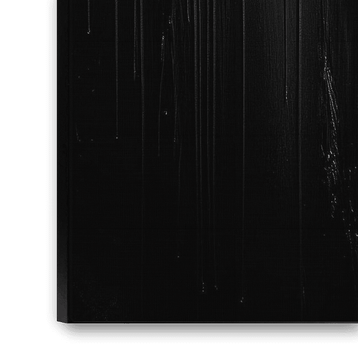 L'élégance sombre rencontre le côté brut de la créativité. Des gouttes fluides et brillantes s'étirent vers le bas en lignes douces, tandis que le noir profond de la base dégage une atmosphère et un caractère dramatique. Idéal pour un salon moderne, où il peut stimuler les conversations et enflammer l'imagination. Parfait pour les amateurs d'art contemporain et d'esthétique minimaliste.
