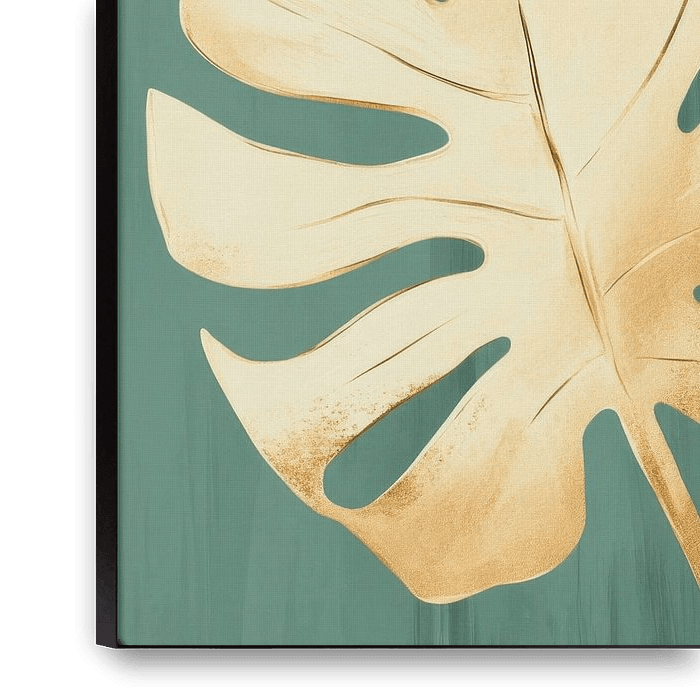 Dans une danse harmonieuse de couleurs, deux feuilles de monstera se déploient, un éclat doré contrastant avec un vert profond et saturé. Les lignes courbes et les découpes délicates des feuilles invitent à la rêverie, tandis que les textures douces en arrière-plan créent une atmosphère détendue mais raffinée. Nature et élégance…
