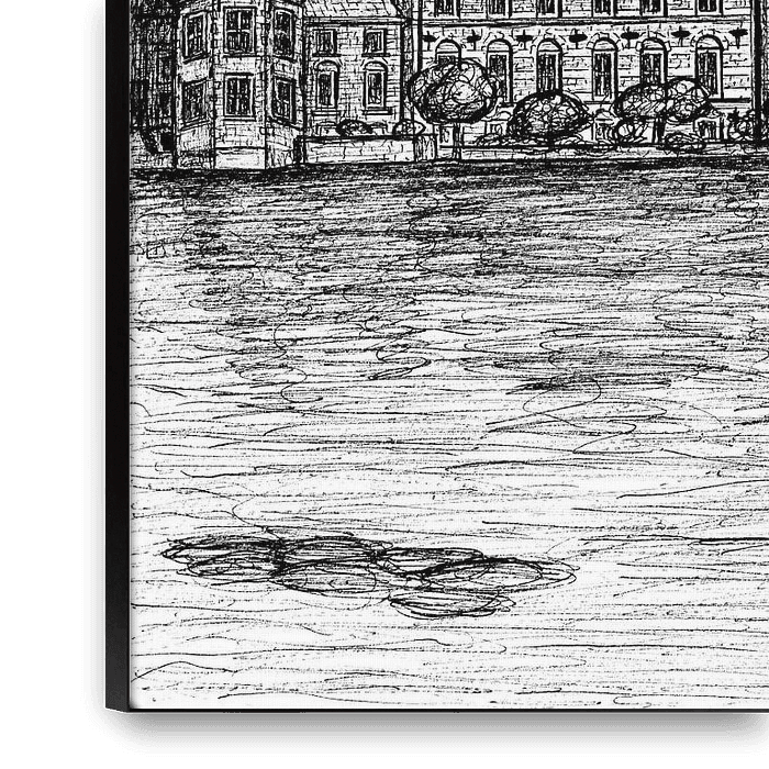 L'original est dessiné au fineliner sur papier. C'est un dessin du Buitenhof à La Haye, où le Parlement néerlandais est basé.